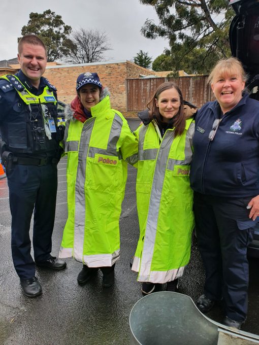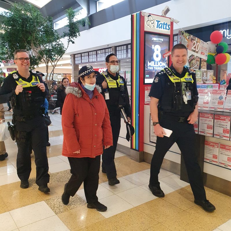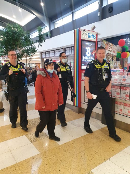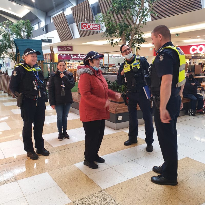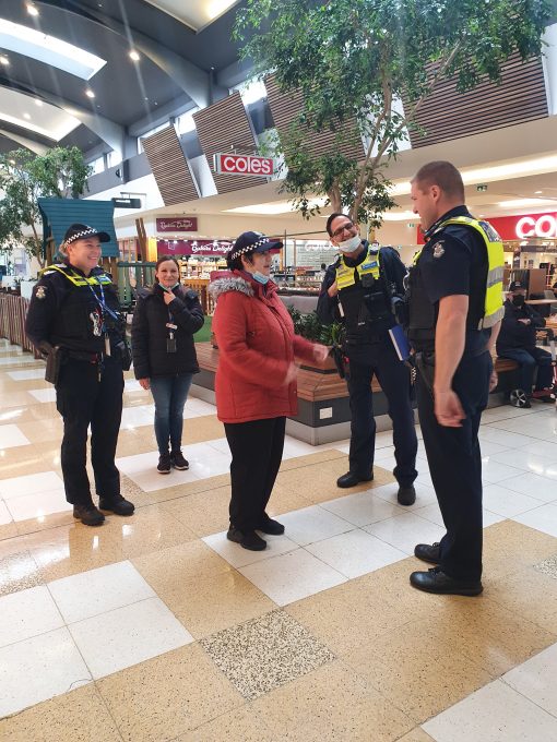 Christina started her day at Mill Park Police Station, where she was Deputised for the day and issued a Victoria Police cap. The first stop for the day was Plenty Valley Shopping Centre, where Christina conducted a patrol of the shopping centre and joined the Coffee with a Cop session at Degani.