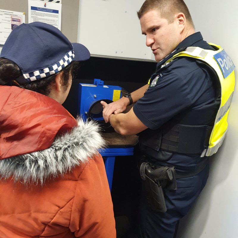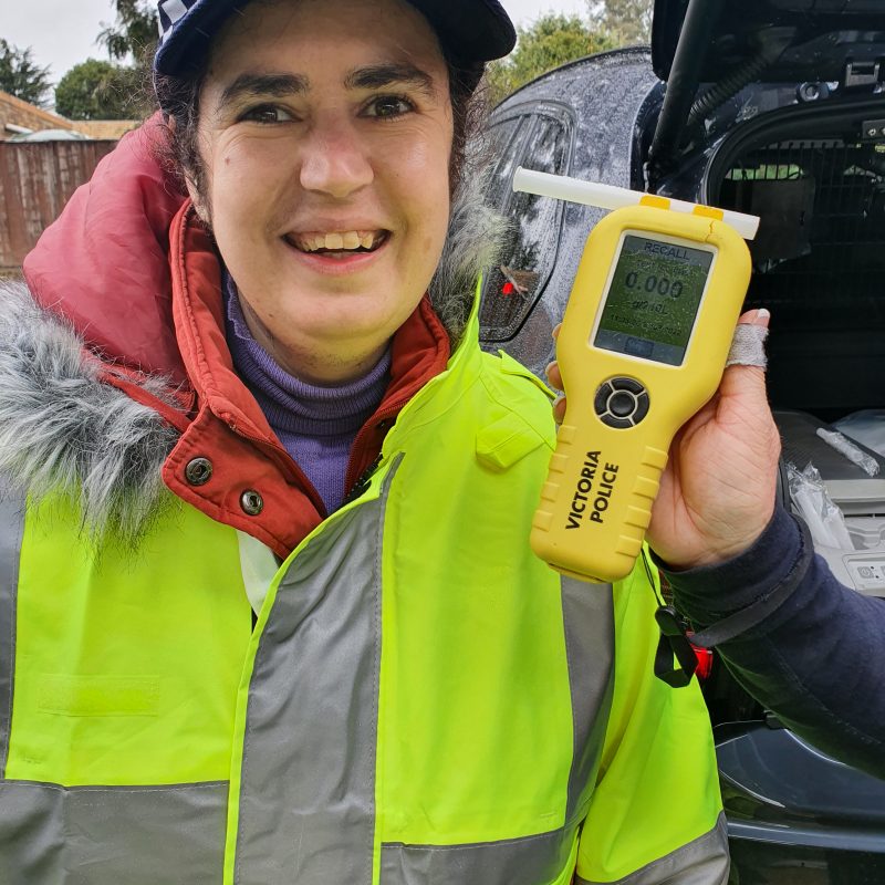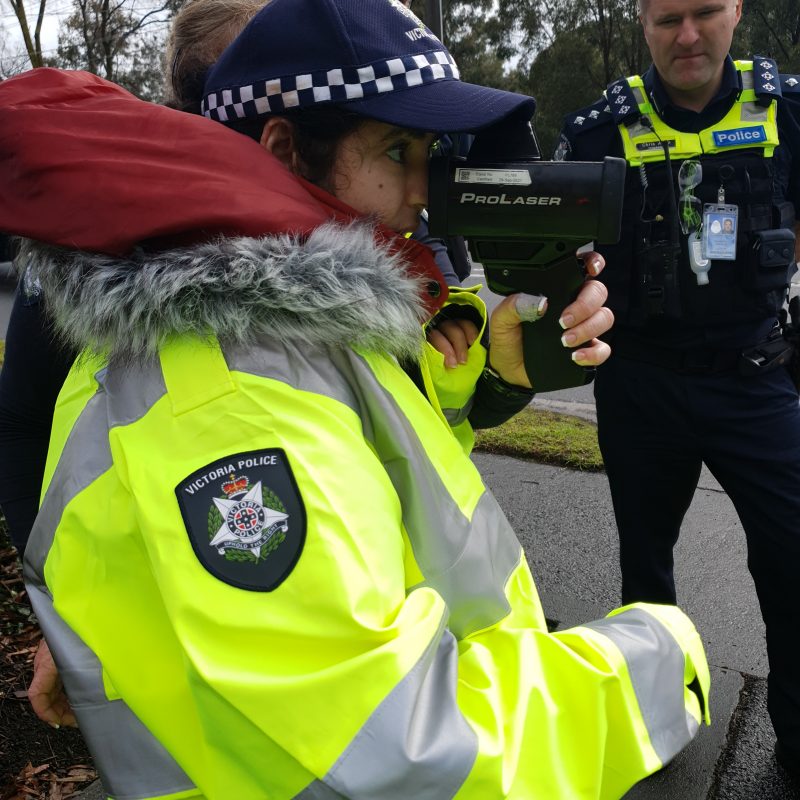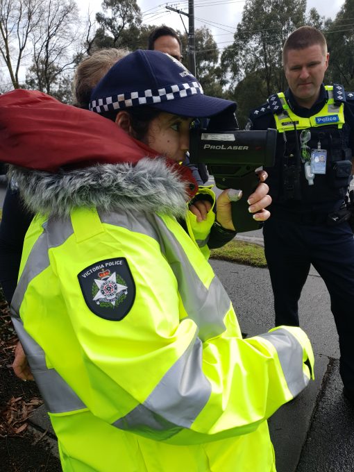 “Today I went to Mill Park police station. I was given a police hat, and I was made an honorary constable for the day by Inspector Chris Allen. We went on patrol to Plenty Valley Shopping centre. I had to look for suspicious activity, lucky there was none. I had a drink of water and chatted to cops during ‘Coffee with a cop’. Then I went to the Greensborough Highway Patrol Unit. They let me borrow a big yellow jacket, and then I went outside to see all the patrol cars. I got to scan a number plate and turn on the sirens. Then I got to use a radar speed gun, and all the cars slowed down! Then I learned how to do breath testing, and I did a breath test. The officers were really nice, I made them laugh with jokes, and they made me laugh too. We had lunch together back at Mill Park, and then I had a tour of the station. I saw lots of confidential things. I met the crime scene officers, they taught me about evidence and showed me how to take a fingerprint, this was my favourite part. I met community police, Sandra and Wendy, they gave me a show bag. I met some detectives, and they all looked very busy with paperwork. At the end I was given a certificate and a folder of photos of the day, I had the fingerprint I took in it. It was the best day, I made friends with all the police and learnt a lot of things.”