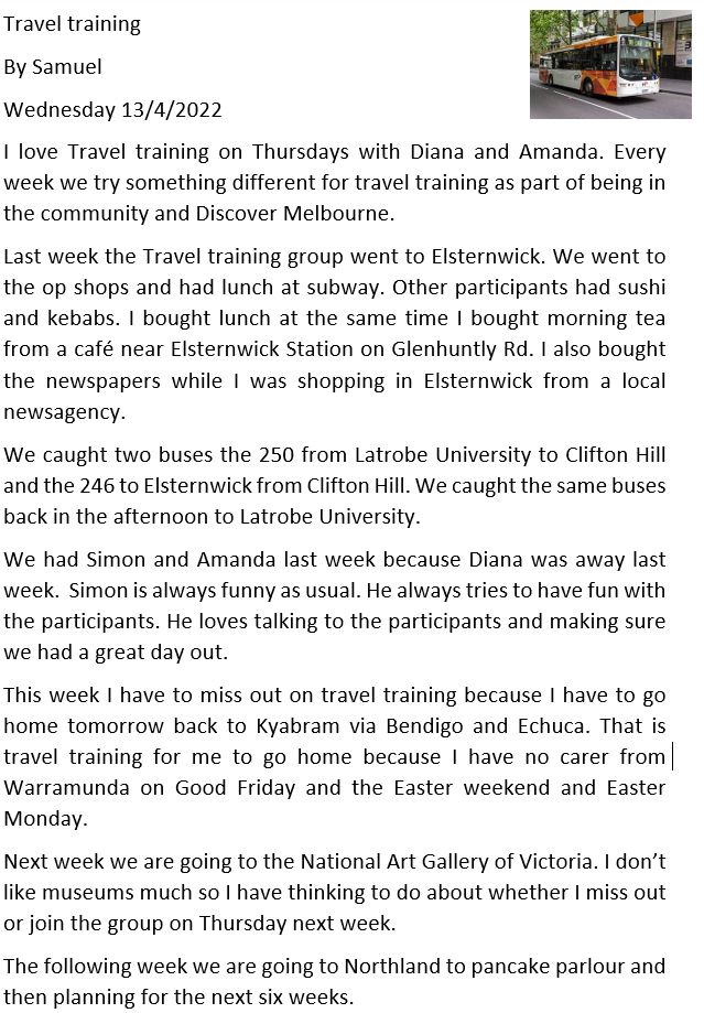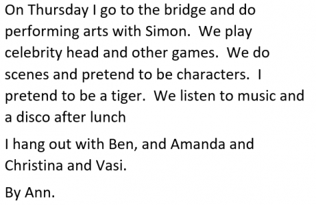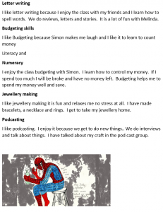 Participants from Bundoora’s Letter Writing group have penned their thoughts on some of the activities they do at Lifeskills so we thought we’d share them with you!