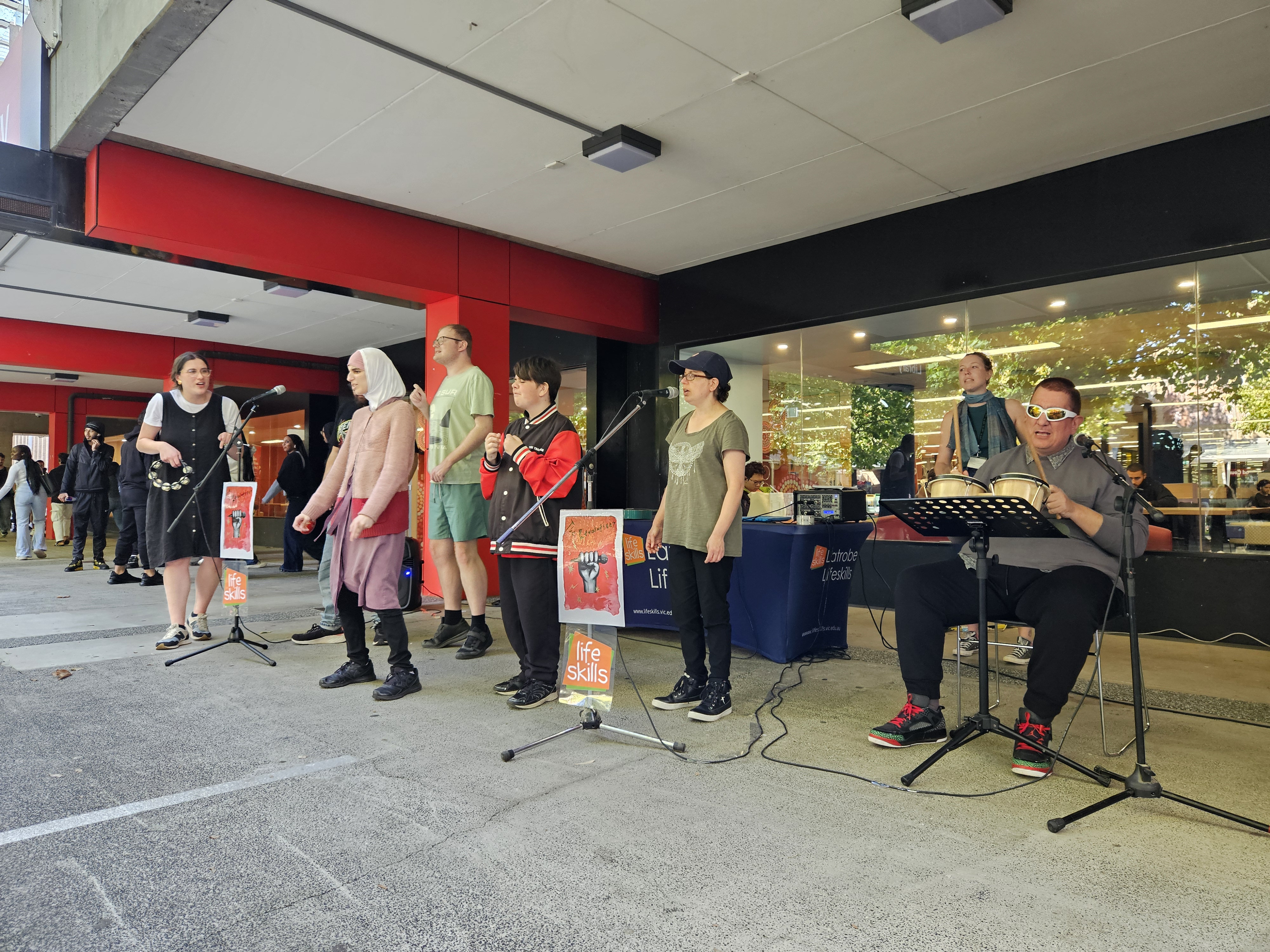 At Latrobe Lifeskills, being based on campus at La Trobe University means so much more than just location — it means being part of a vibrant, inclusive community. And earlier this week, that spirit was on full display as our singing group, The Revolutions, took to The Agora for a lunchtime performance.